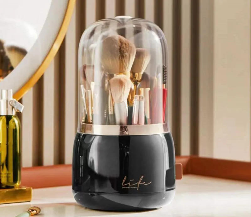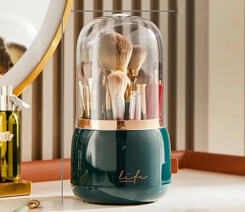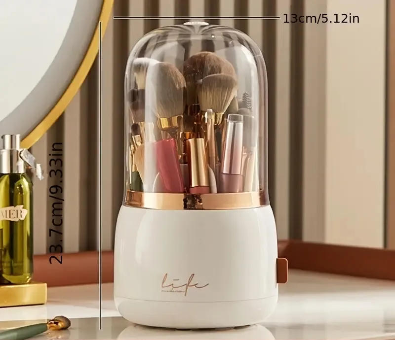 Libere seu espaço de penteadeira e a sua mente do estresse com o nosso Porta Maquiagem Giratório com Tampa.