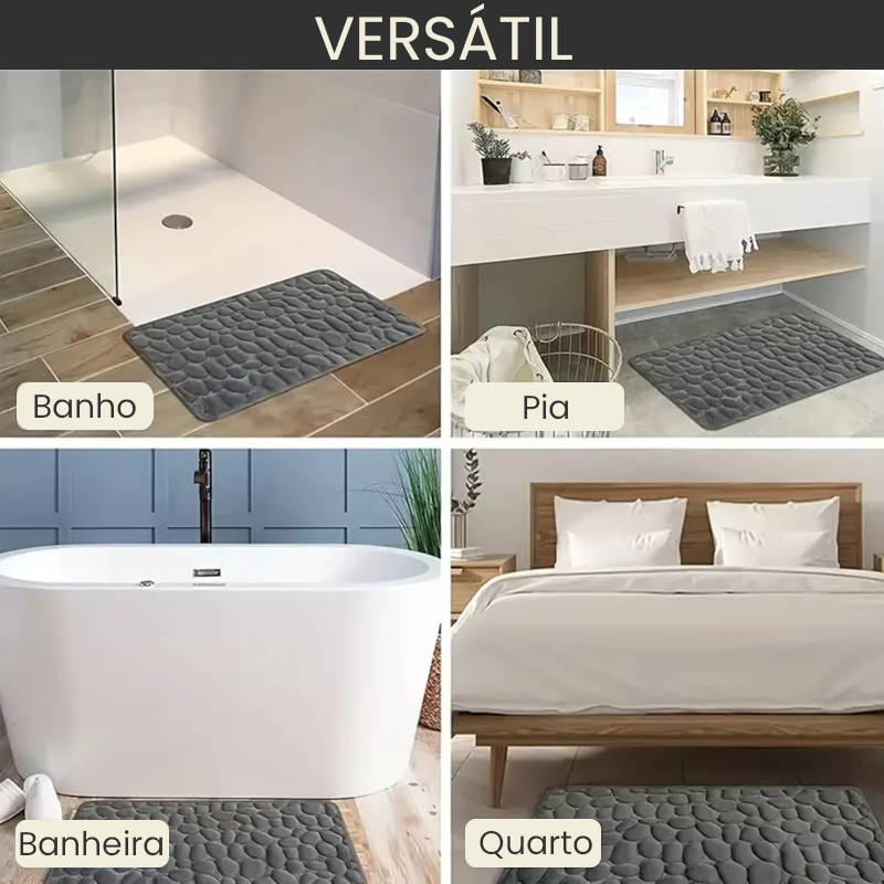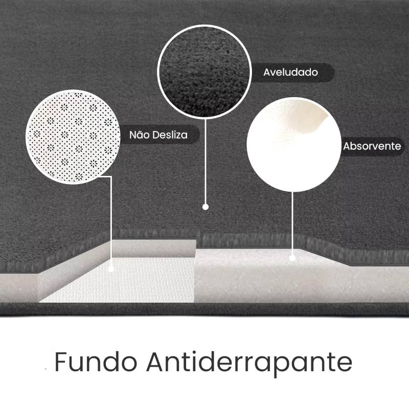 Esse tapete agrega ao seu banheiro um toque de sofisticação e acolhimento. Cada vez que seus pés tocam o tapete, você sente a segurança de estar em um espaço que combina praticidade e elegância. Ele é perfeito para quem valoriza um ambiente que reflete cuidado e bom gosto.