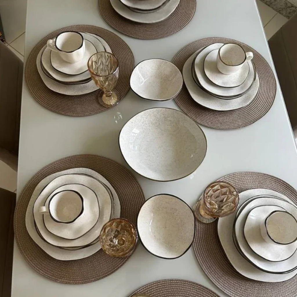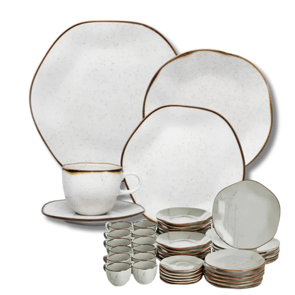 Produzido em porcelana premium de alta durabilidade, este conjunto completo de 54 peças traz elegância, resistência e acabamento refinado para transformar suas refeições. O kit combina sofisticação com praticidade, ideal para o dia a dia ou para ocasiões especiais.