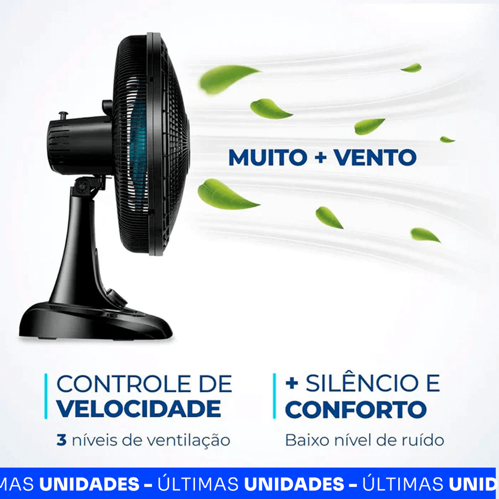 - Tecnologia: Nova geração de ventiladores turbo silenciosos