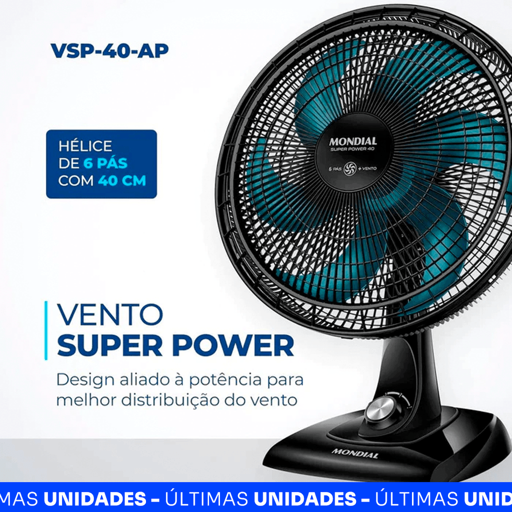 - Potência: Motor de alta performance para máxima ventilação